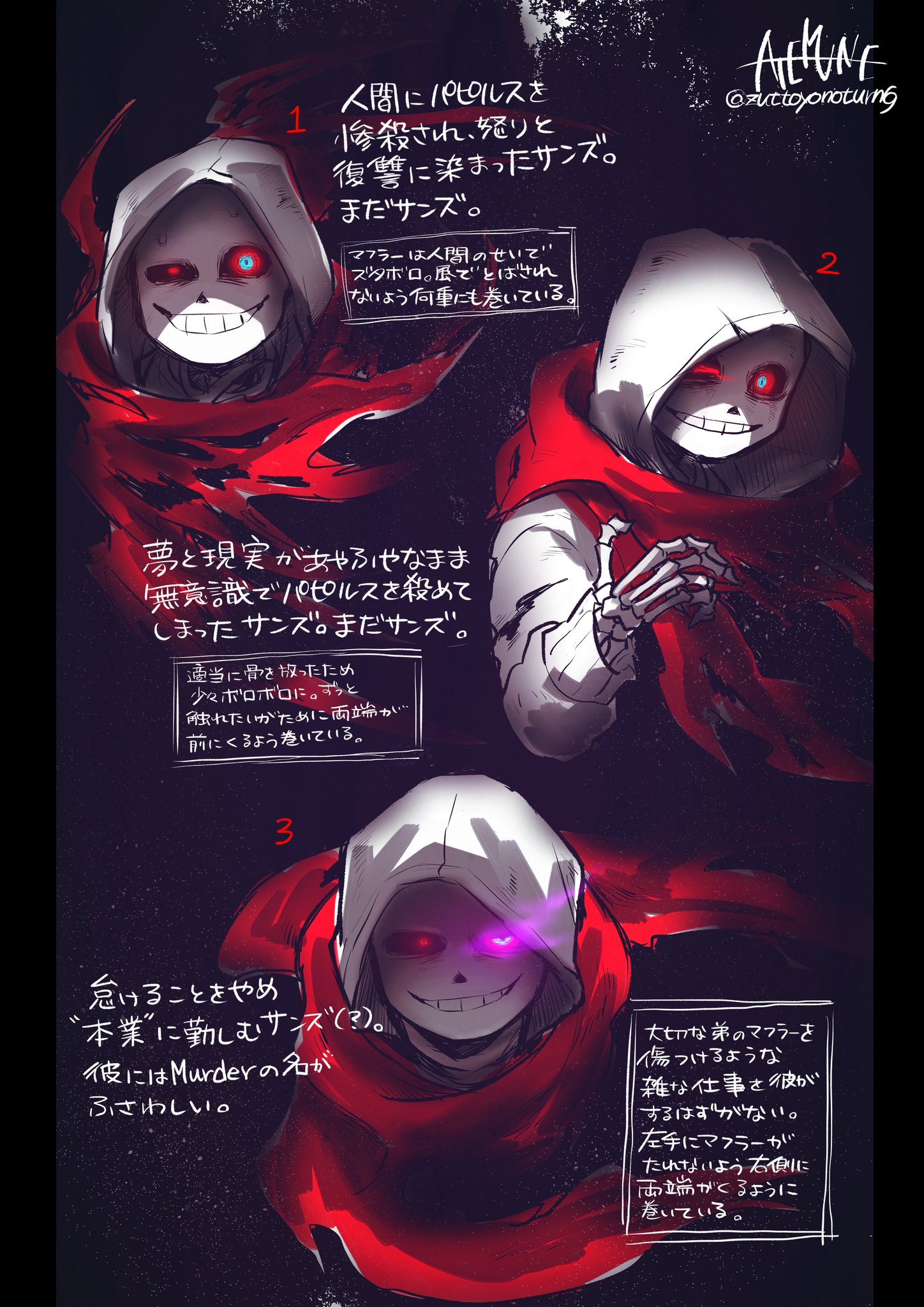 アテ宗 Dusttaleにおけるmurder Sansの個人的な表情とマフラーのボロボロ具合概念メモ Dusttale小説のネタバレを含みます